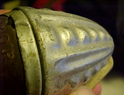Well, as luck would have it I was right about the "knobbly" Luxors - this is the only set of these I've seen (so far). The pattern consists of rows of raised square "tents" (pyramids?), larger at the front of the light and smaller at the tail, alternating with recessed lines tapering smaller at the tail. Note difference in the patterns on the headlight and taillight. The pattern on the taillight is less-well defined, and the tapered lines are different in composition. The clasp on the headlight is damaged and bent, and the square opening it fits into is also damaged and torn, but I think I can save it. The lens of the taillight is of the "concentric rings" pattern, very dirty with some scratches, but no fractures and should polish-up nicely. So what is this pattern called, and which mud guards does it match?